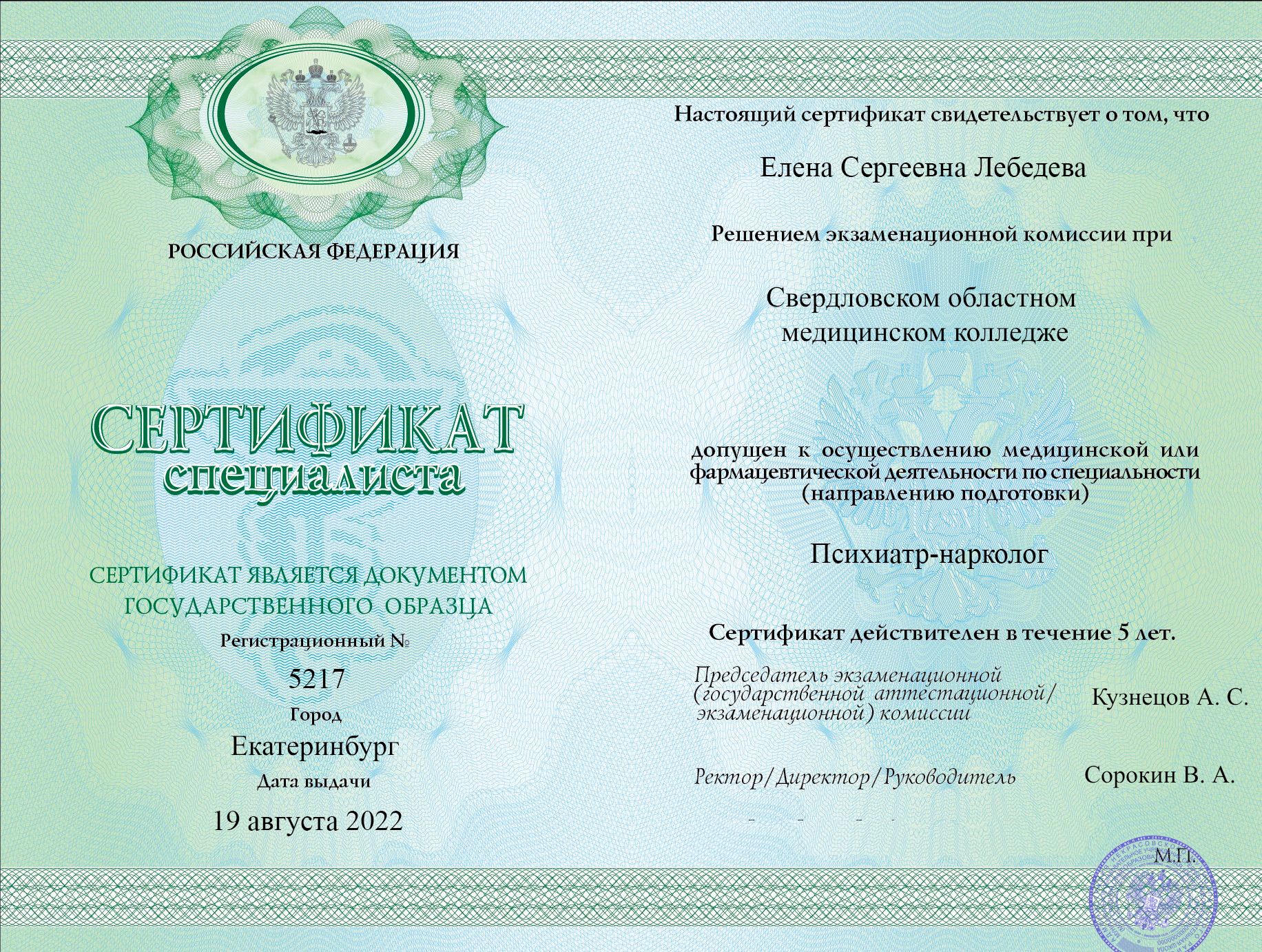 Елена Сергеевна Лебедева врач нарколог клиники доктора Стукаловой в Гиагинской